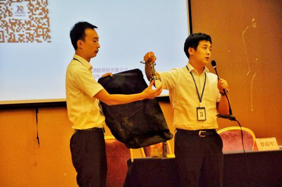 9月13日我司“高樓應急逃生系統”參加灃西新城釣臺街道安全培訓會現場報道