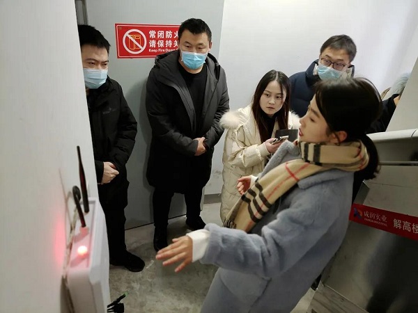 考察團一行實地走訪西咸新區灃西新城轄區內灃潤和園小區“高樓應急安全逃生智聯系統”升級項目施工現場,詳細了解安裝情況。