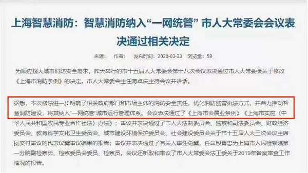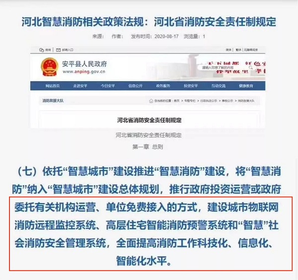 消防安全作為國家公共安全的重要組成部分,日益受到公眾的關注。關于智慧消防的建設,早在2017年的“297號文件”就開始了。在全國發生了多起重大火災后,使社會的目光聚焦于消防安全,各地政府更是從上至下推出了一系列指導意見及整改文件,多方位、多層次的對消防安全保障提出了新要求,并將智慧消防納入智慧城市總體規劃,打造現代化城市治理新戰略。