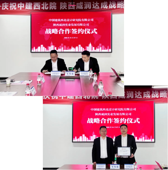 會上,陜西咸潤實業發展有限公司董事長周維國與中建西北院城市發展和規劃設計研究院院長劉安定簽署了戰略合作協議,開啟了合作新篇章。