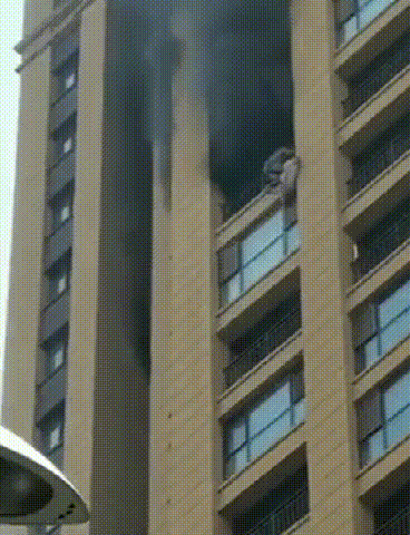 火災發生后,起火樓層的一位住戶爬出了陽臺,試圖自救。不過,遺憾的是,這位住戶最終支撐不住,從25層墜落到3層平臺。事發的這一幕被小區業主用手機拍攝下來,畫面令人揪心。