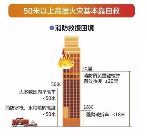 在超高層建筑火災(zāi)事件中,消防云梯車救助高度有限,要想成功逃生,很多時候要靠自救。