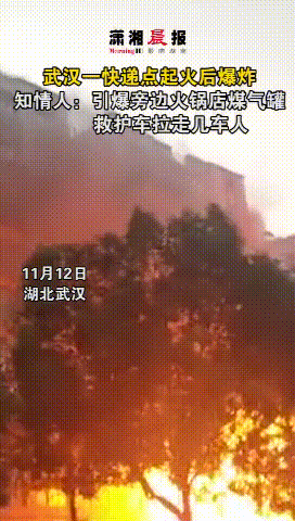 11月12日,湖北武漢洪山區(qū)一快遞收發(fā)點(diǎn)起火,導(dǎo)致隔壁火鍋店的煤氣罐被引爆,一排門面都被燒完。