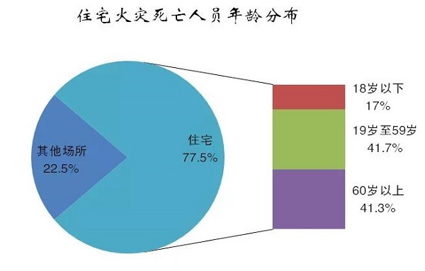 我國的老齡人口所占比例還在逐年升高,老年人口的安全防范和逃生自救能力明顯不足,防范遏制住宅火災(zāi)特別是人員傷亡應(yīng)予以高度重視。
