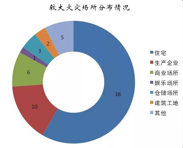 從火災(zāi)亡人的場所分布看,全年共發(fā)生居民住宅火災(zāi)10.9萬起,占火災(zāi)總數(shù)的43.4%,造成917人死亡、499人受傷,分別占總數(shù)的77.5%和64.4%,特別是發(fā)生較大火災(zāi)38起,占總數(shù)的58.5%,多數(shù)為一家老小在火災(zāi)中傷亡,成為影響火災(zāi)整體形勢的重要部分。