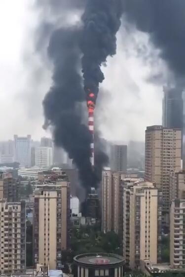 現場圖片和視頻顯示,有明火,黑煙高達數十米,幾公里外清晰可見。